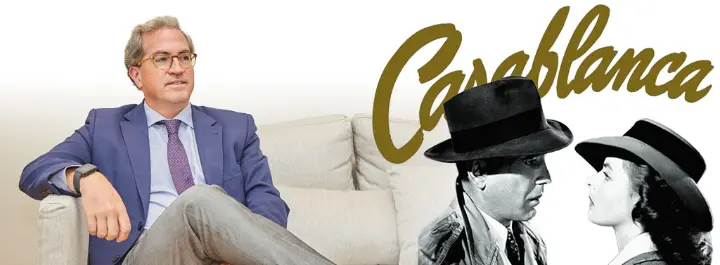 La película elegida fue Casablanca, uno de esos títulos que siguen ocupando un lugar privilegiado en la historia del cine. Tras la proyección, el coloquio estuvo guiado por Álvaro Matud Juristo, profesor universitario y director académico de la Fundación Tatiana Pérez de Guzmán el Bueno, especialista en historia del cine y pensamiento humanista. Su intervención ayudó a situar la película en su contexto histórico y cinematográfico, y permitió descubrir por qué esta obra sigue conmoviendo generación tras generación: por la fuerza de su guion, por la riqueza de sus personajes, por su trasfondo moral y por su capacidad para mostrar que las decisiones verdaderamente importantes exigen altura humana.