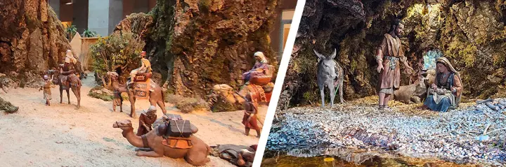 Un clásico circular a dos alturas, con unas 200 figuras y 20 construcciones originales del maestro José Luis Mayo, pensado para una visión 360º. Recorre la secuencia evangélica e introduce escenas costumbristas —el molinero, el herrero o una madre despiojando a su hijo— que encantaron al grupo.